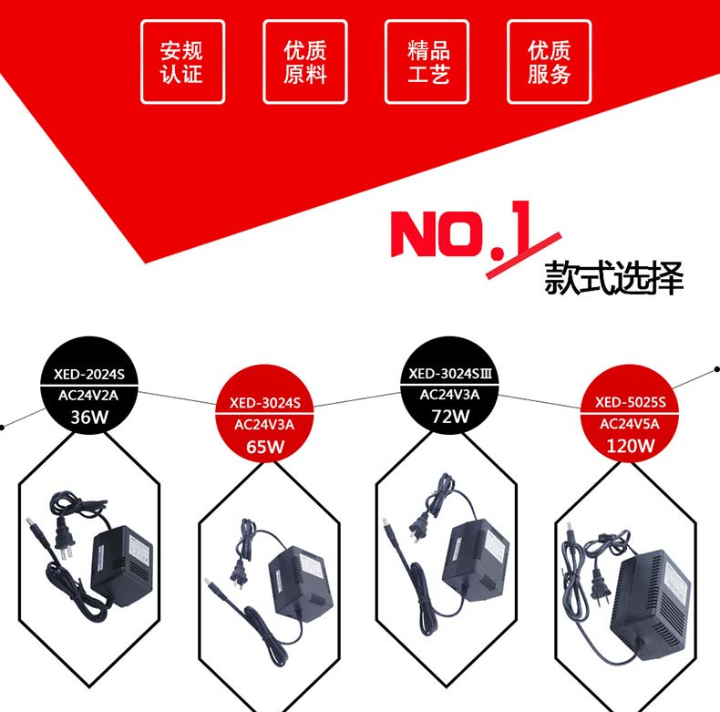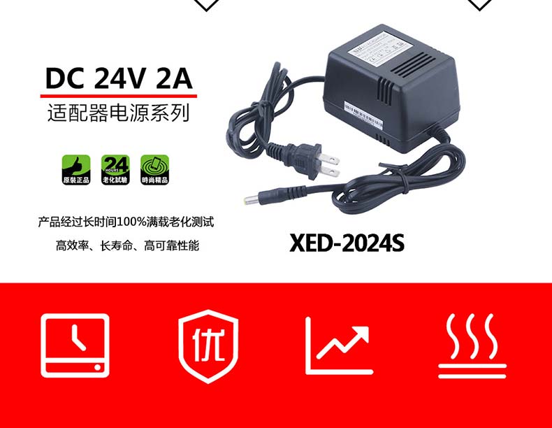 XED-2024S低壓AC/AC電源,AC24V低壓輸出電壓,變壓器電源適配器。