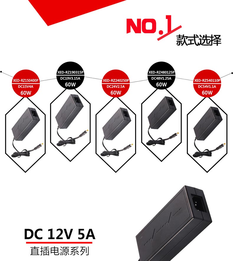 XED-RZ240250P品字尾電源適配器,60W桌面式電源適配器,能過6級(jí)能效,通過多國(guó)認(rèn)證。