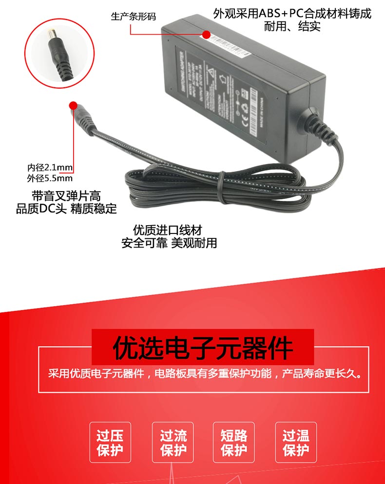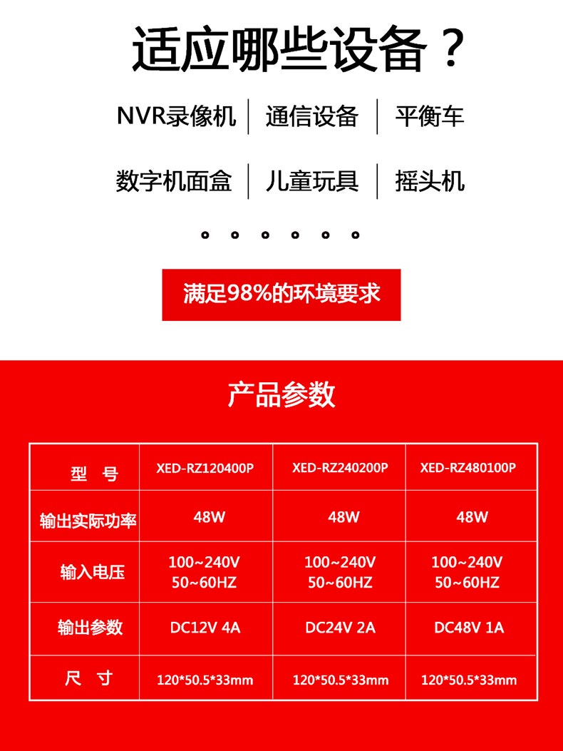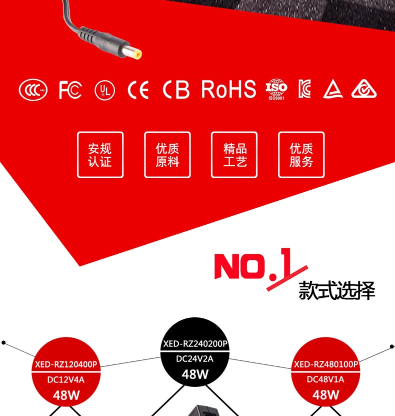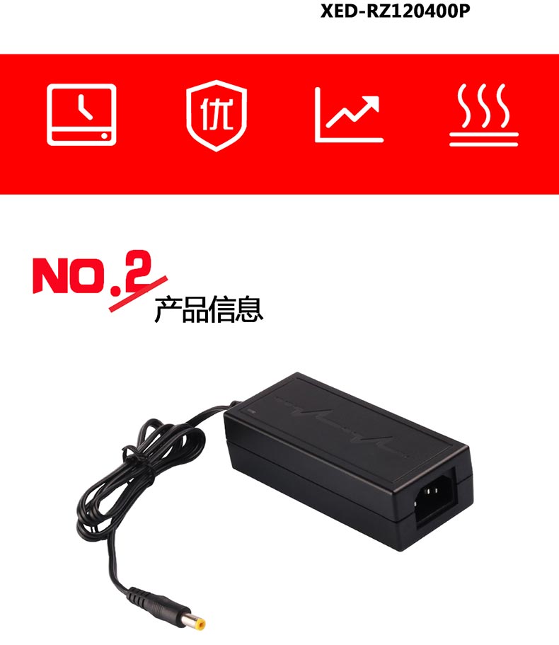 XED-RZ120400P品字尾電源適配器,48W桌面式電源適配器,能過6級能效,通過多國認(rèn)證。