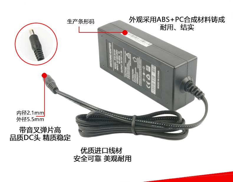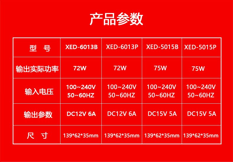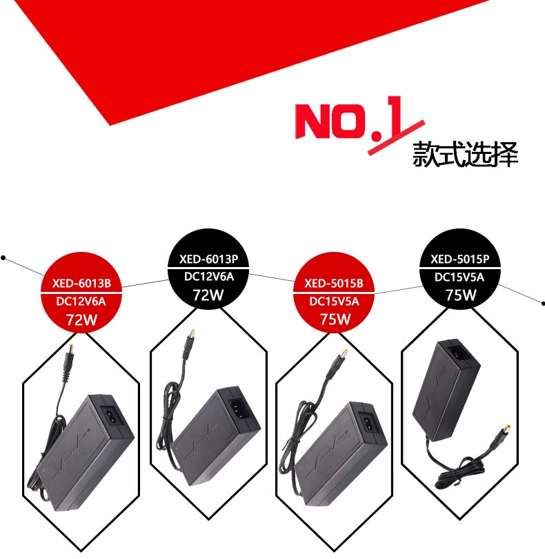 XED-5015P品字尾電源適配器,75W桌面式電源適配器。