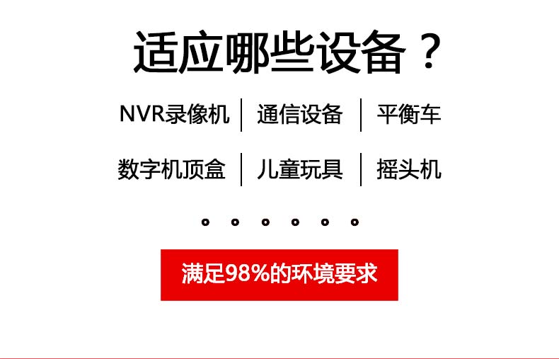 可適用范圍監(jiān)控安防、軍工設(shè)備、科研設(shè)備、LED照明、工控設(shè)備、通訊設(shè)備、電力設(shè)備、儀器儀表、工業(yè)自動化控制、數(shù)碼產(chǎn)品、視聽產(chǎn)品和儀器等。