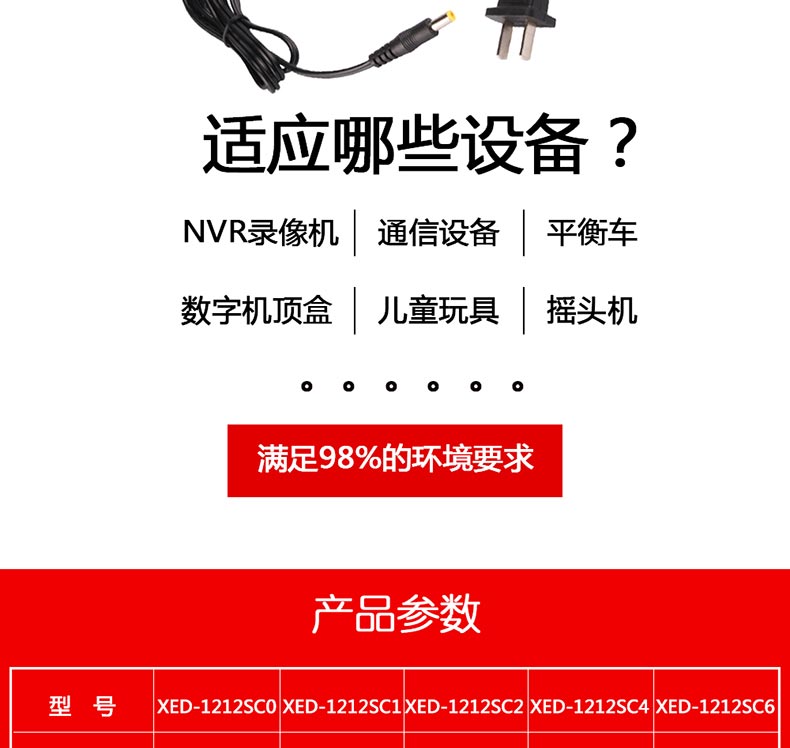 XED-1212SC0桌面式電源適配器,12V巴西規(guī)電源適配器。