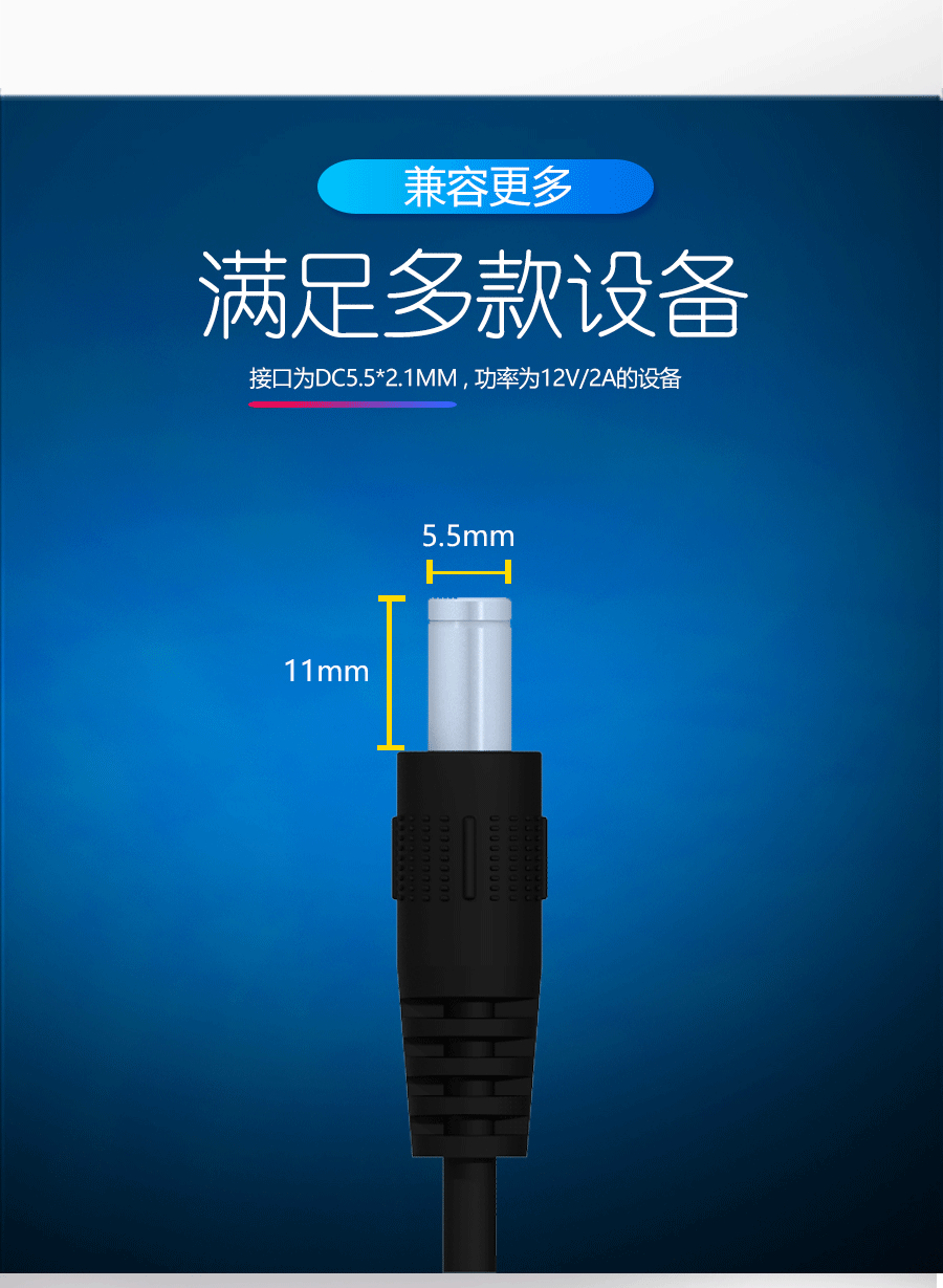AC線長(zhǎng)50cm,DC線長(zhǎng)50cm,安裝更實(shí)用,采用彩盒包裝;