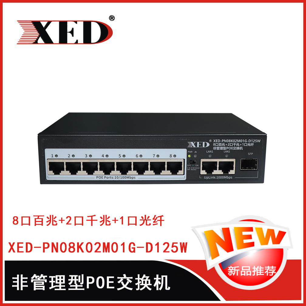XED-PN08K02M01G-D125W是一款高性能的百加千兆POE交換機(jī),可通過網(wǎng)線為無線AP,攝像頭等...