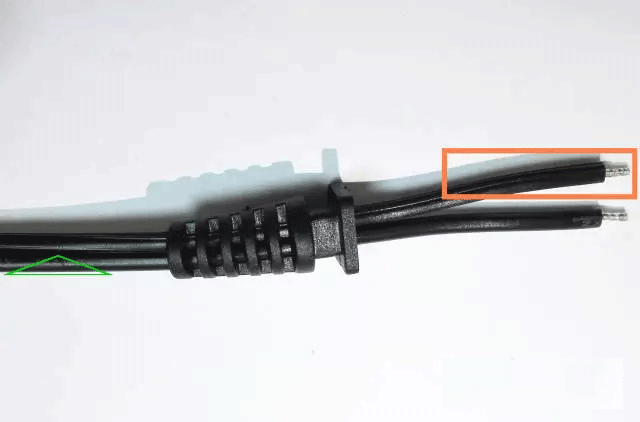 (如下圖)畫圈圈的為正極,線材上有一條虛線;另外一根為負(fù)極。