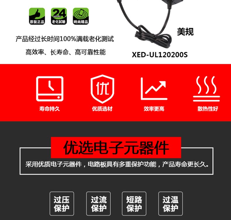 XED-UL120200S美規(guī)電源適配器,24W桌面式電源適配器,能過6級能效,通過多國認證。